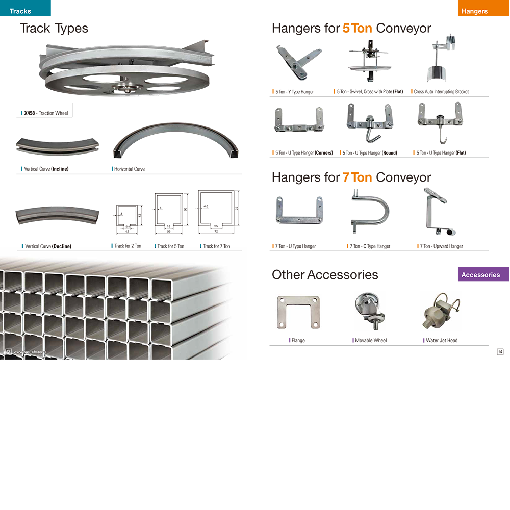 We have wide range of conveyor load capacity, for Close Track Monorail types of Conveyor. Load capacity for single hinging point from 25kg to 100kg. The Monorail overhead conveyor designed for maximum conveying flexibility in small spaces.